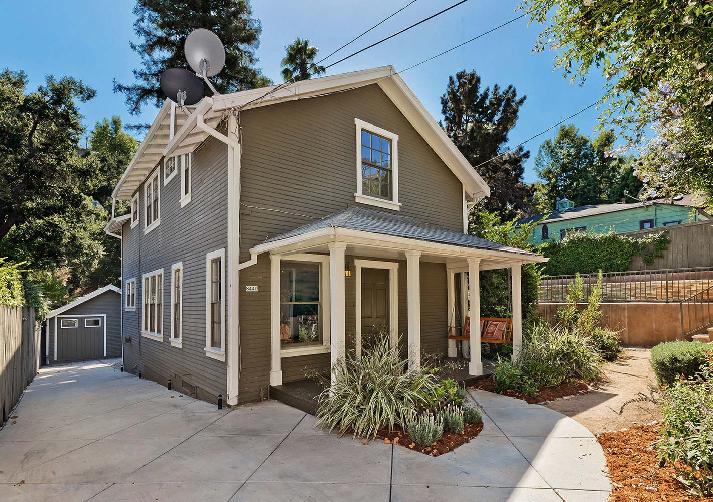 Quintessential Laurel Canyon character greets you in this charming 3+3 home w/ sep 1+1 GH. Beautifully updated w/ gleaming wood flrs, stone flrs & all new carpeting. Privately situated on a professionally landscaped double lot w/ pool & spa in the Wonderland School district. Chef's kitchen w/ granite countertops, stainless appliances & breakfast bar flows into the large LR w/ wb FP, DR & den. Upstairs level features master suite, plus two additional guest BRs w/ Jack & Jill BA. Wisteria covered trellis shades an outdoor patio perfect for dining, while the pool deck & rear flat yard under the majestic redwood trees afford unique entertainment possibilities. Large basement w/ laundry, work bench & rare huge storage space. Lovely front porch, fruit trees & a long gated private drive.